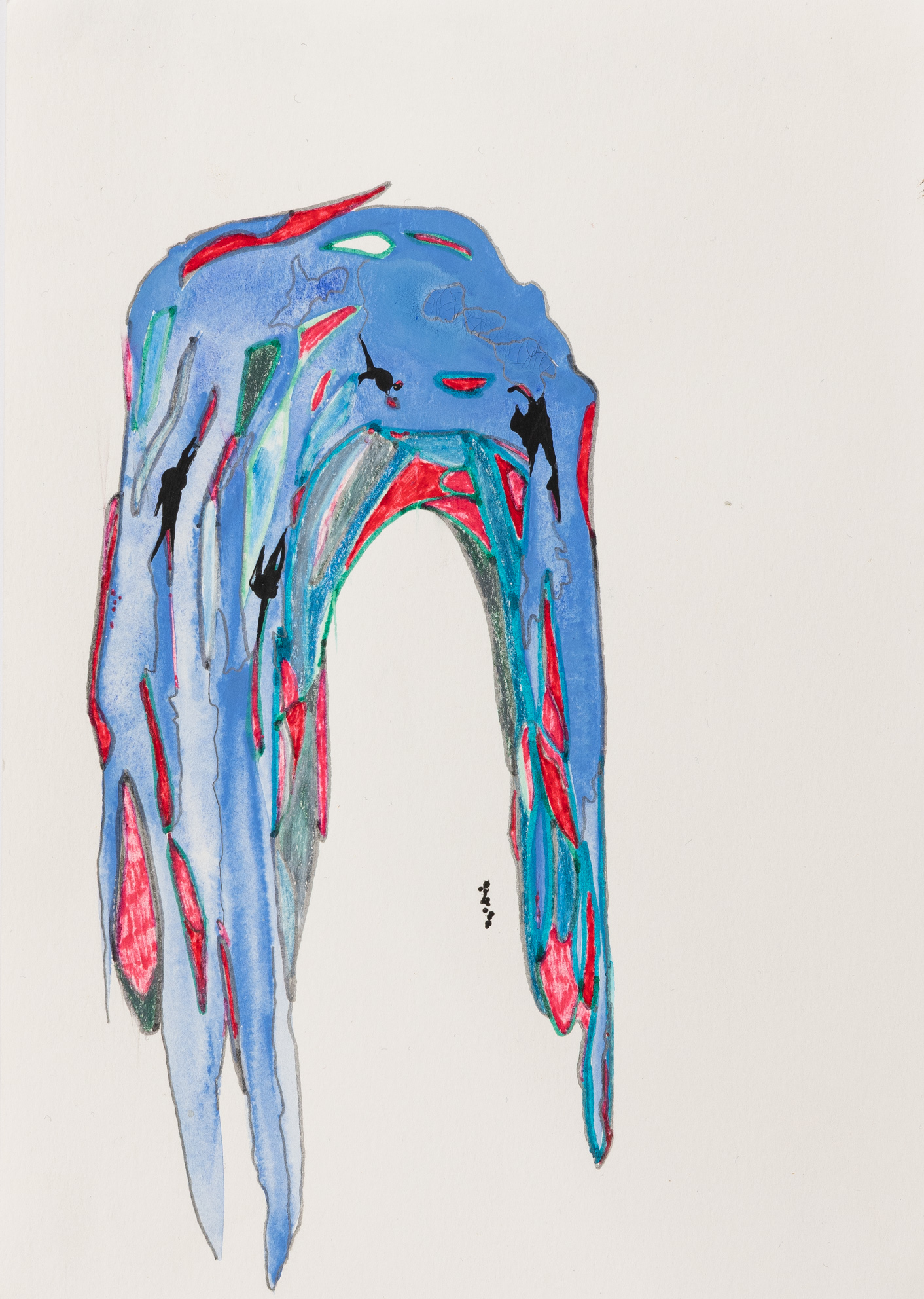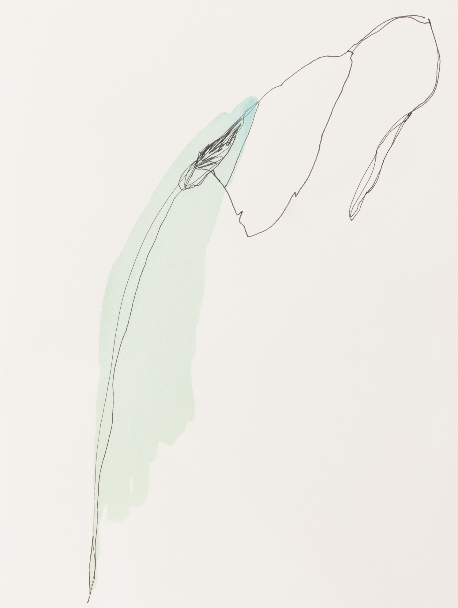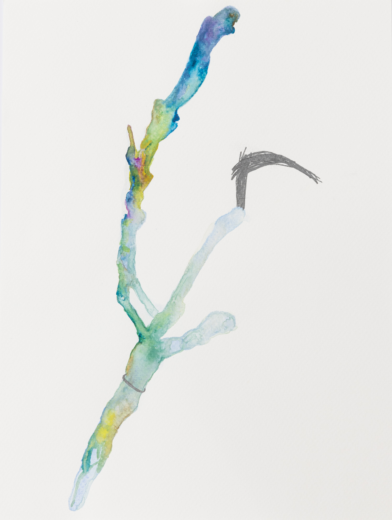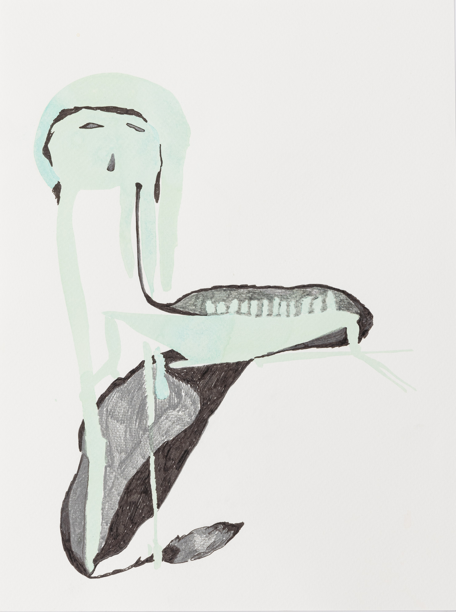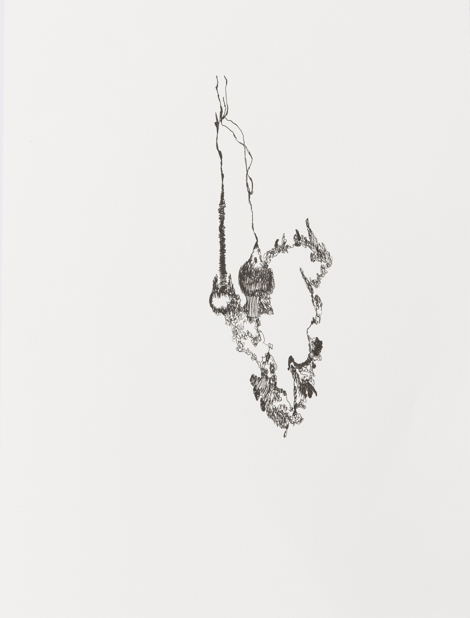 Laura Ní Fhlaibhín has always maintained a drawing aspect to her practice, as a means to access and nourish intuitive storytelling. Drawing is open-ended for her: there is a freedom in where the line will go, what images become central, who are the characters. Sometimes she works with pencil, or combines materials such watercolours, homemade inks such as oak gall, copper oxide and willow charcoal, with smears of lubricant and medicinal ointments. She works intuitively when she draws and finds the possibilities when faced with a blank sheet/page/pad to be both parts exhilarating and nerve wracking. Once marks are made, the drawings take on their own life, preoccupations come into focus; maybe it’s a gathering of kin spirits, or a charged tree branch, or a swollen intestinal inflammation.